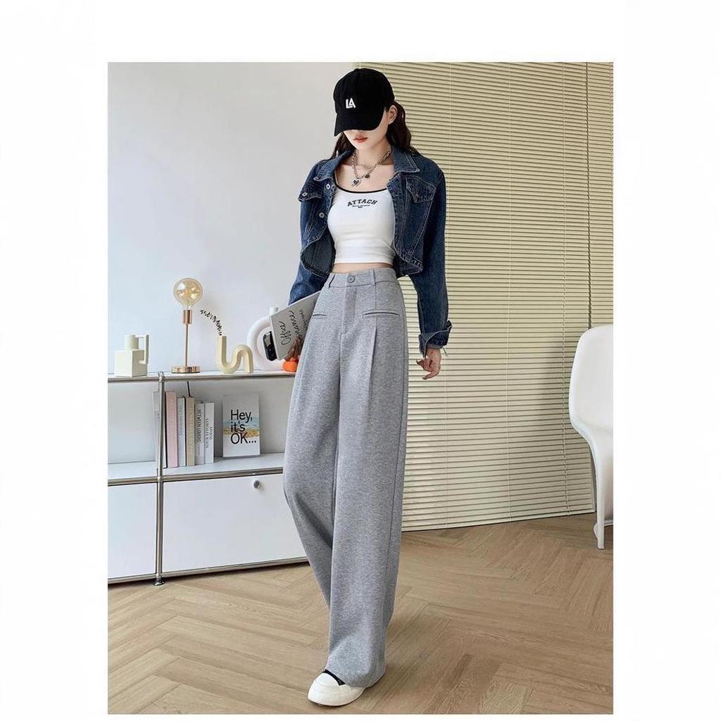 Discover the perfect blend of comfort and style with these high waist loose straight leg pants tailored for petite women. Crafted from a material blend that includes spandex, these pants offer a flexible fit ideal for both spring and autumn wear. The sportive style is enhanced by a sleek grey suit color, making them versatile for both casual outings and relaxed office settings. Experience effortless elegance and unrestricted movement with these must-have pants.