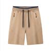 Men's Casual Five Point Elastic Rope Shorts Summer Pure Cotton Washed Solid Color Pocket Zipper Loose Shorts