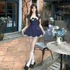 “Petite Bowknot Preppy Blue Puffy Dress – Summer 2025 A-Line Waist-Cinched Short Skirt”