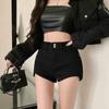 Women's High Waist Black Denim Shorts - Summer Slimming Petite Fit
