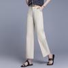 Women's Summer 2025 Cotton Slim-Fit High-Waisted Wide-Leg Cropped Pants