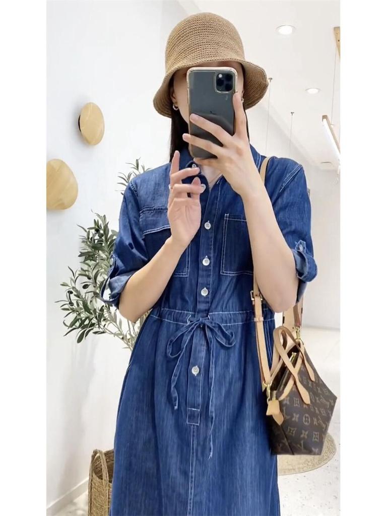 This stylish women's dress features a slim-waist design, perfect for showcasing your silhouette during the summer of 2025. Made entirely from high-quality denim, it offers both comfort and durability. The short sleeves add a casual, breezy touch, making it an ideal choice for warm weather outings or casual gatherings. Its versatile look can be easily dressed up or down, making it a must-have addition to your summer wardrobe.