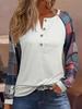 2024 Spring/Summer Women's Button Color Block Long Sleeve Casual T-shirt