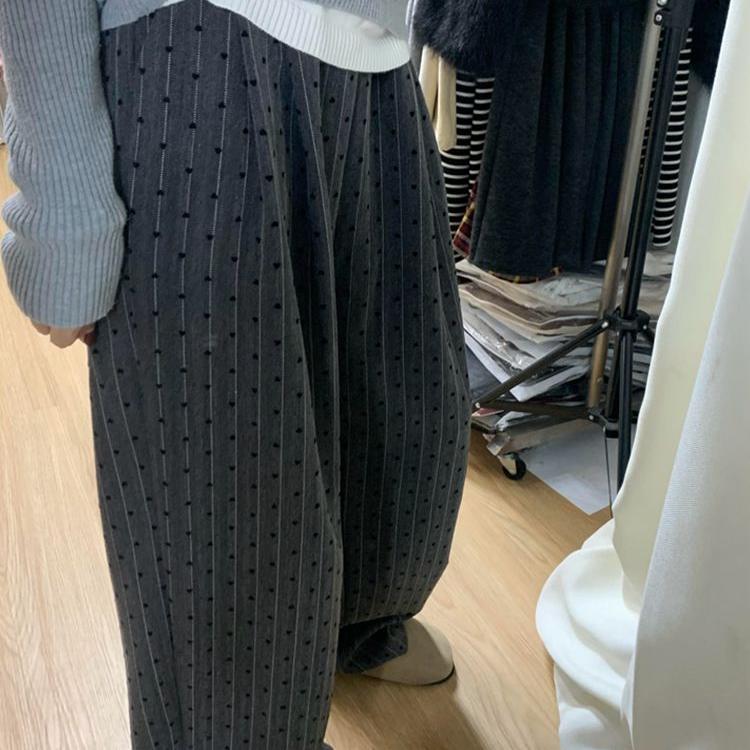 Elevate your wardrobe with these stylish dark grey wide-leg high-waist pants, featuring a charming heart polka dot pattern. Crafted from a comfortable spandex material, they offer a slimming, drapey fit that is perfect for casual wear. These pants perfectly blend a sportive style with elegance, providing you with a versatile piece that's both fashionable and functional.