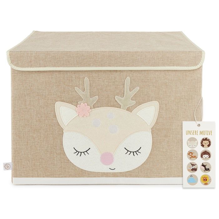 Bieco boîte de rangement avec couvercle motif chevreuil ella - environ 65 l - 36x36x51 cm - coffre à jouets pliable pour enfants
