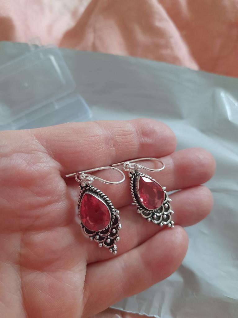 Pink Tourmaline Gemstone 925 Sterling Silver Jewelry Earrings 1.9" Gift For Mom EE-85-18
