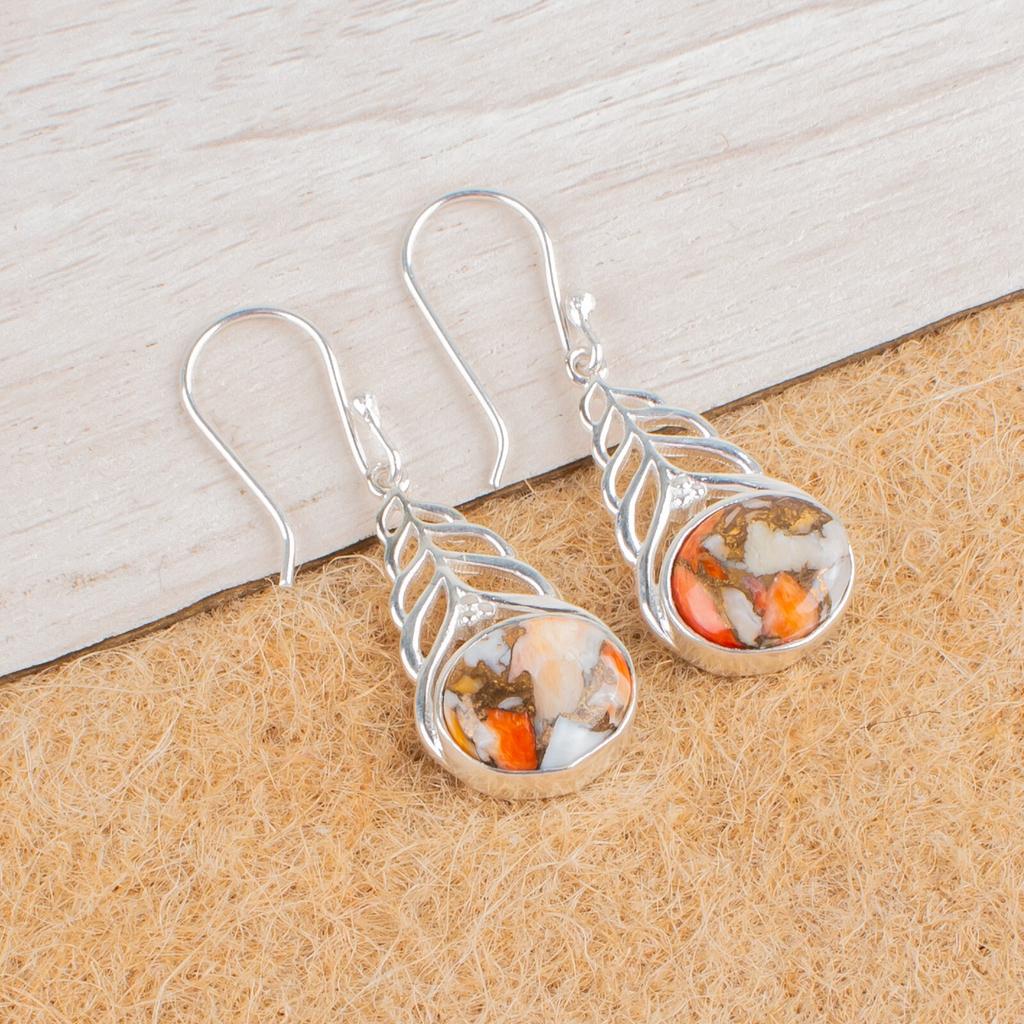Orange Copper Turquoise Gemstone 925 Sterling Silver Jewelry Drop Earrings 1.64" CE-1-40
