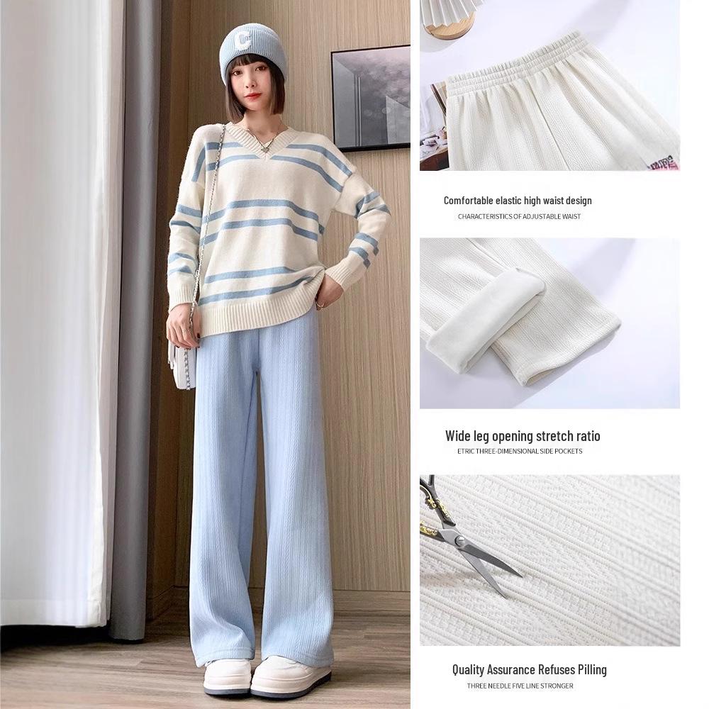 Stay cozy and stylish this autumn and winter with these high-waist knitted chenille fleece-lined wide-leg pants, featuring a charming wheat ear pattern. Designed for women who appreciate a blend of comfort and fashion, these pants are made with a spandex material that ensures flexibility and ease of movement. The fleece lining provides extra warmth, making them perfect for cooler seasons. The sportive style adds a modern touch, allowing you to effortlessly transition from a casual day out to a relaxed evening in.