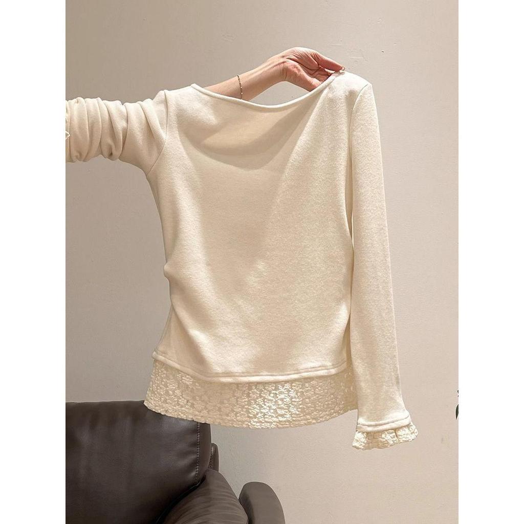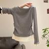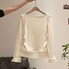 Sweet Apricot Ruched Waist Ruffle Long Sleeve Knit Top