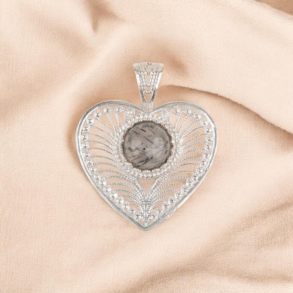 Natural Black Rutile Gemstone 925 Sterling Silver Jewelry Handmade Pendant 1.4" CP-15-28