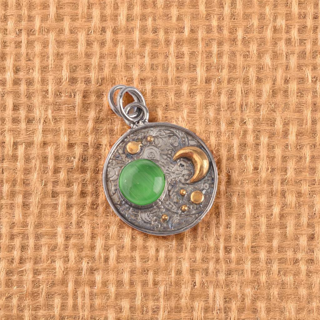 Green Cat's Eye Gemstone 925 Sterling Silver Jewelry Handcrafted Pendant 1.30" PP-33-45