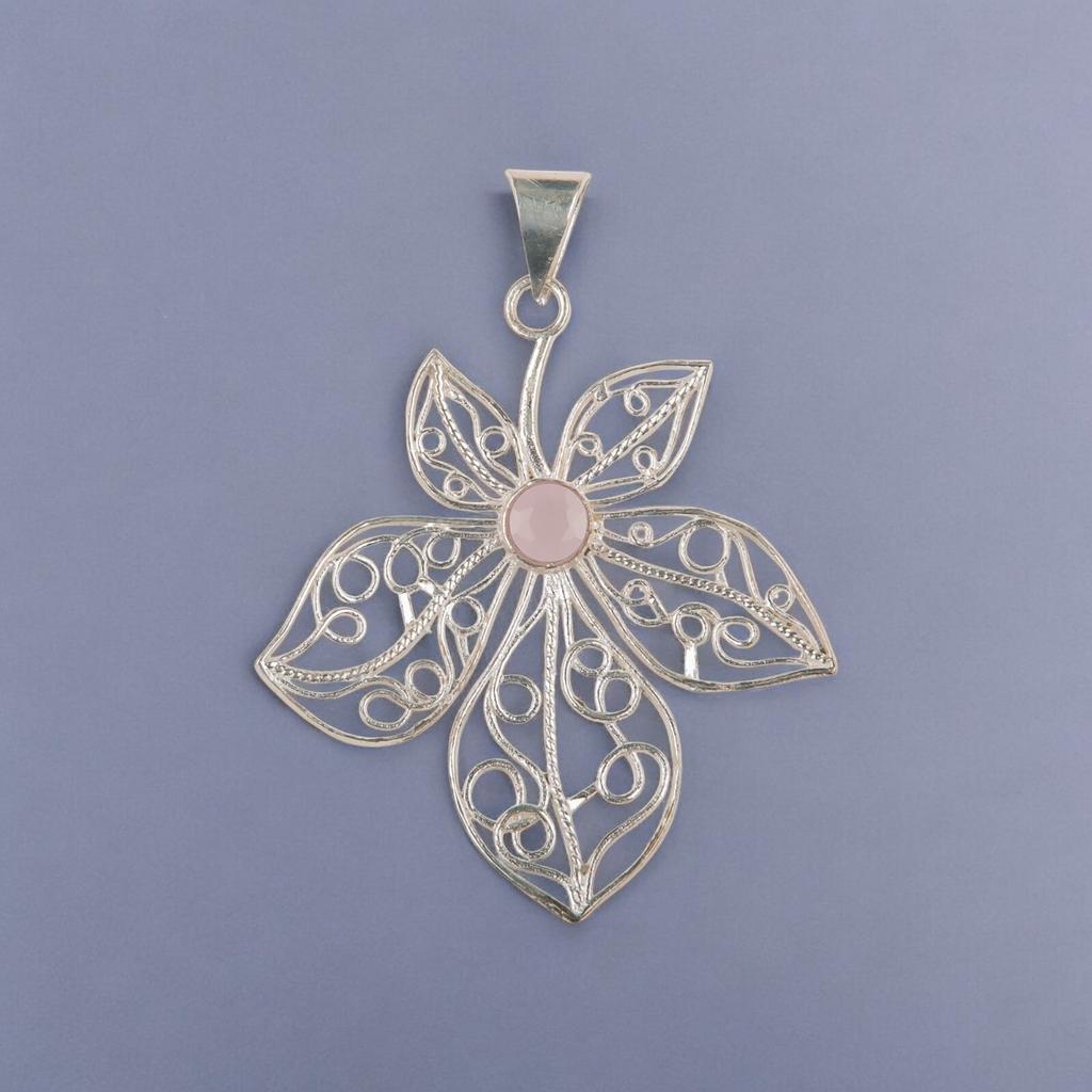 Pink Chalcedony Gemstone 925 Sterling Silver Jewelry Handmade Boho Pendant 2.29" CP-19-17