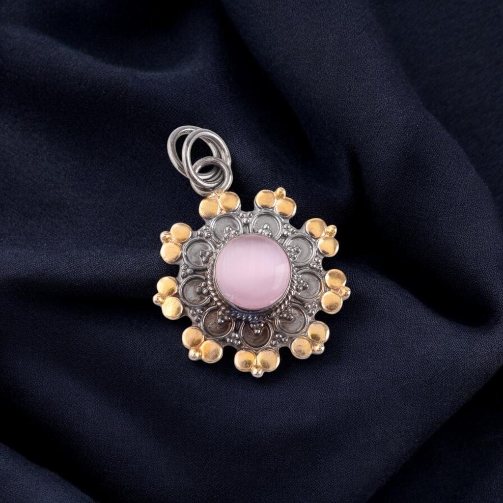 Pink Cat's Eye Gemstone 925 Sterling Silver Jewelry Handcrafted Pendant 1.26" PP-32-45