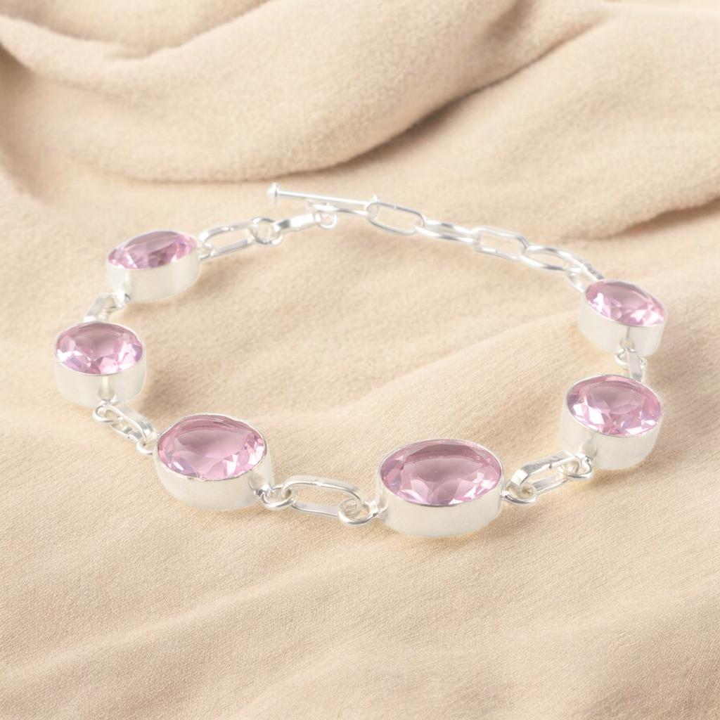 Morganite Gemstone 925 Sterling Silver Handmade Bracelet Jewelry For Women Gift RB-5-17