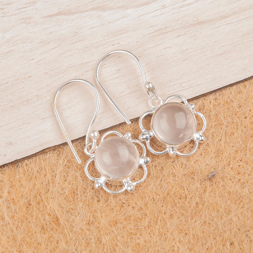 Natural Rose Quartz Gemstone 925 Sterling Silver Jewelry Handmade Earrings1.40" EE-56-19