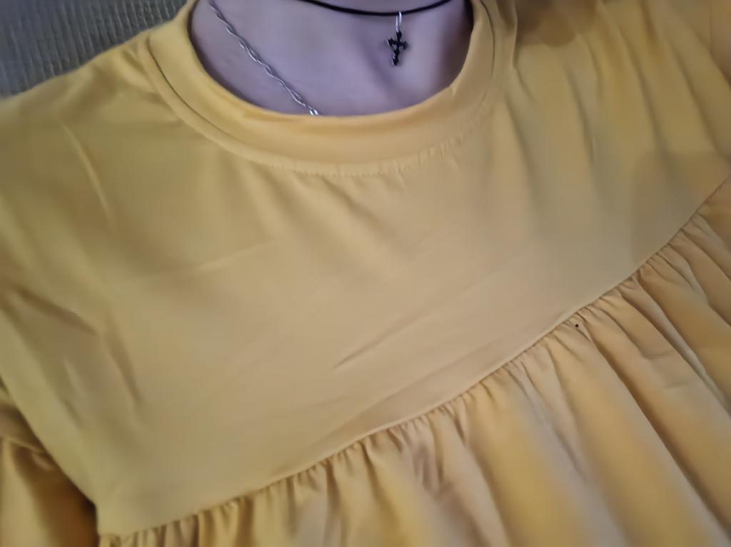 The model that arrived differed significantly in collar shape and fabric. What I received looks more like a t-shirt with ruffles.