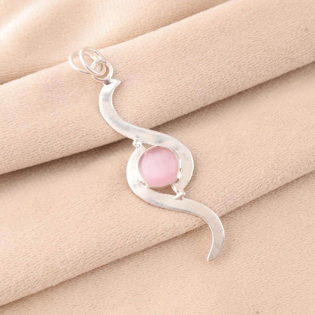 Pink Cat's Eye Gemstone 925 Sterling Silver Jewelry Handcrafted Designer Pendant PP-44-34