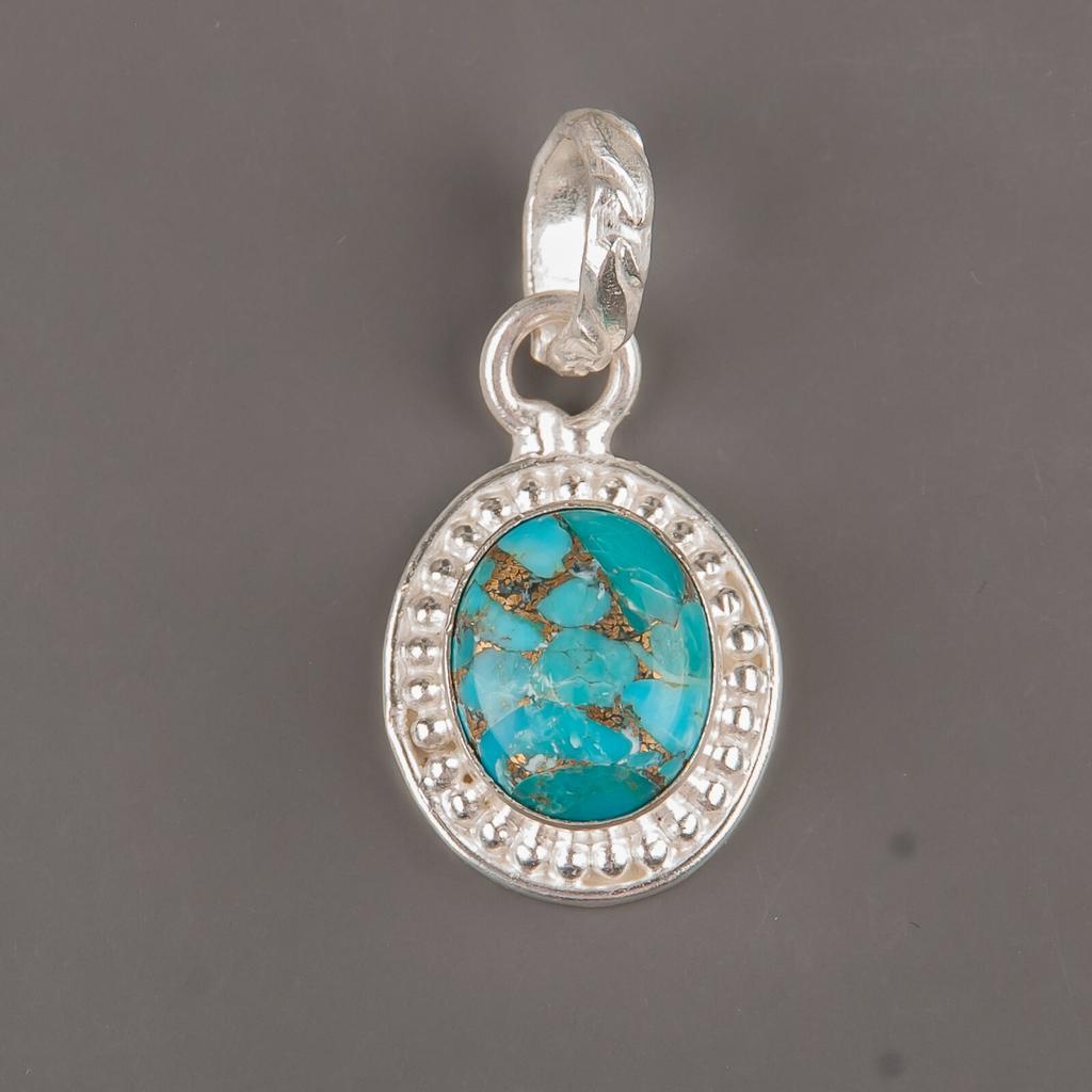 Blue Copper Turquoise Gemstone 925 Sterling Silver Jewelry Pendant 1.20" For Her PP-7-37
