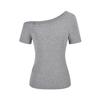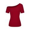 Spring 2025 Off-Shoulder Slim Fit Women's T-Shirt - Solid Color, Short-Sleeve Pullover