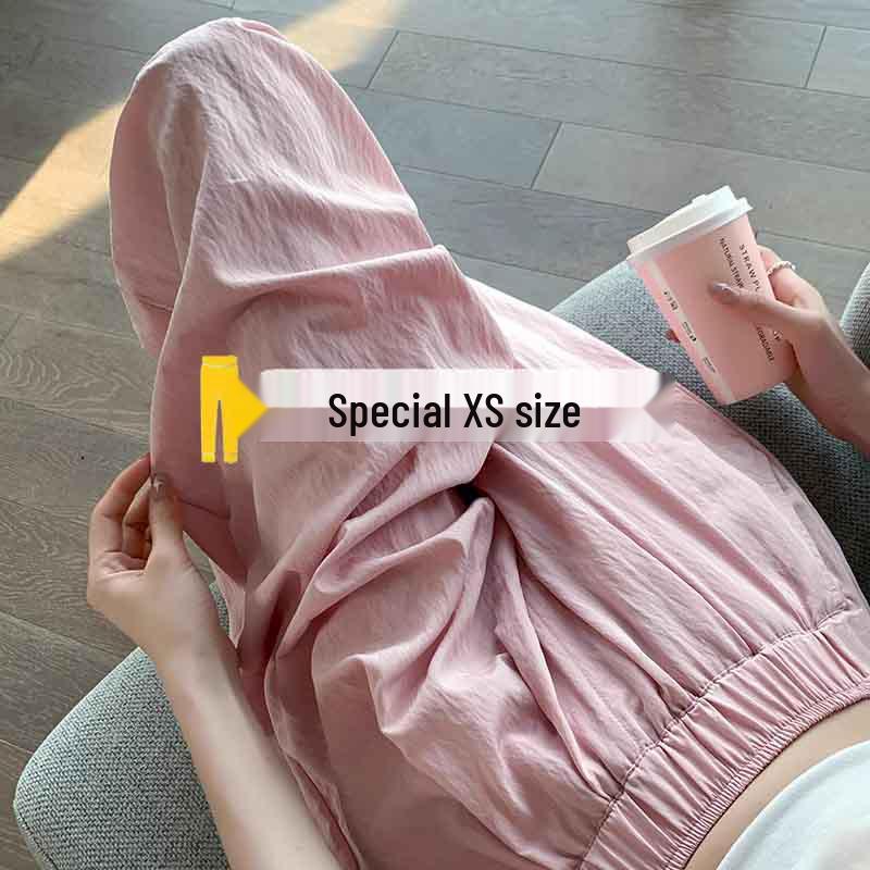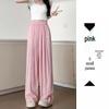 Experience ultimate comfort and style with these women's high-waist wide-leg pants, perfect for the summer season. Crafted from luxurious ice silk with a touch of spandex, these pants offer a breathable and stretchy fit that moves with you. The flattering pink hue and draping design create a chic and relaxed look, ideal for any petite figure. Embrace a sportive vibe while enjoying the elegance of loose-fit fashion.