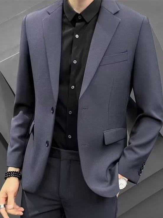 Men's 2024 Autumn/Winter Hong Kong Style Slim Fit Business Suit Jacket for Weddings and Formal Occasions.