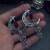 Cross-Border Gothic Ruby Moon Snake Pendant Vintage Earrings