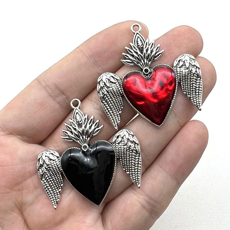 Retro Gothic Winged Heart Earrings & Necklace Set