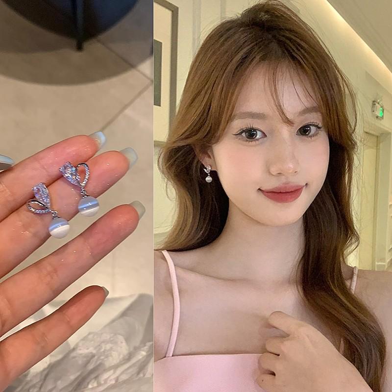 Heart-Shaped Cat's Eye Zircon Earrings: 2024 Trendy Niche Design Luxury Studs & Clips