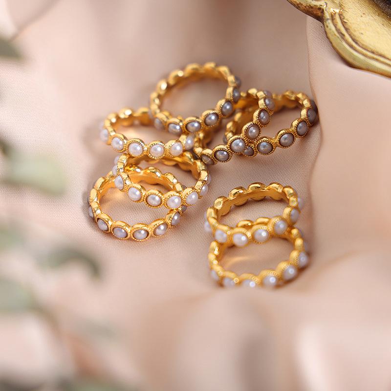 Chinese Retro Gypsophila Shell Bead Ring: Luxurious, Non-Fading Titanium Steel Jewelry for Women