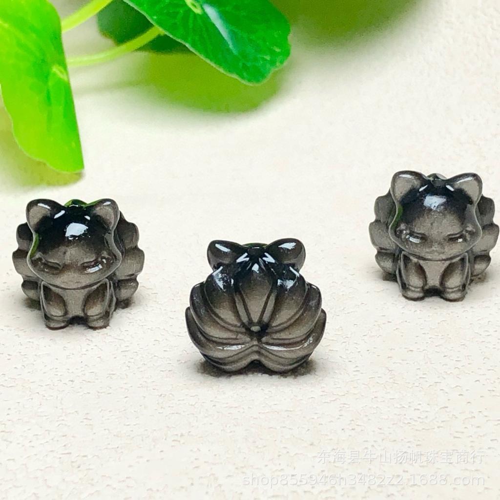 "Silver Obsidian Nine-Tailed Fox Pendant Bracelet Accessory”