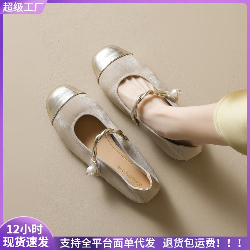 Flat-soled Single Shoes Women's Spring and Summer Word with Mary Jane Shoes Shallow Mouth Soft-soled Egg Roll Shoes