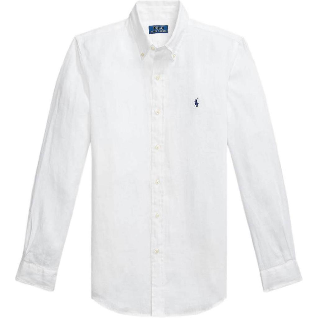 Polo Ralph Lauren Solid Logo Polo Button Long Sleeve Shirt Men Shirts White 710966294003