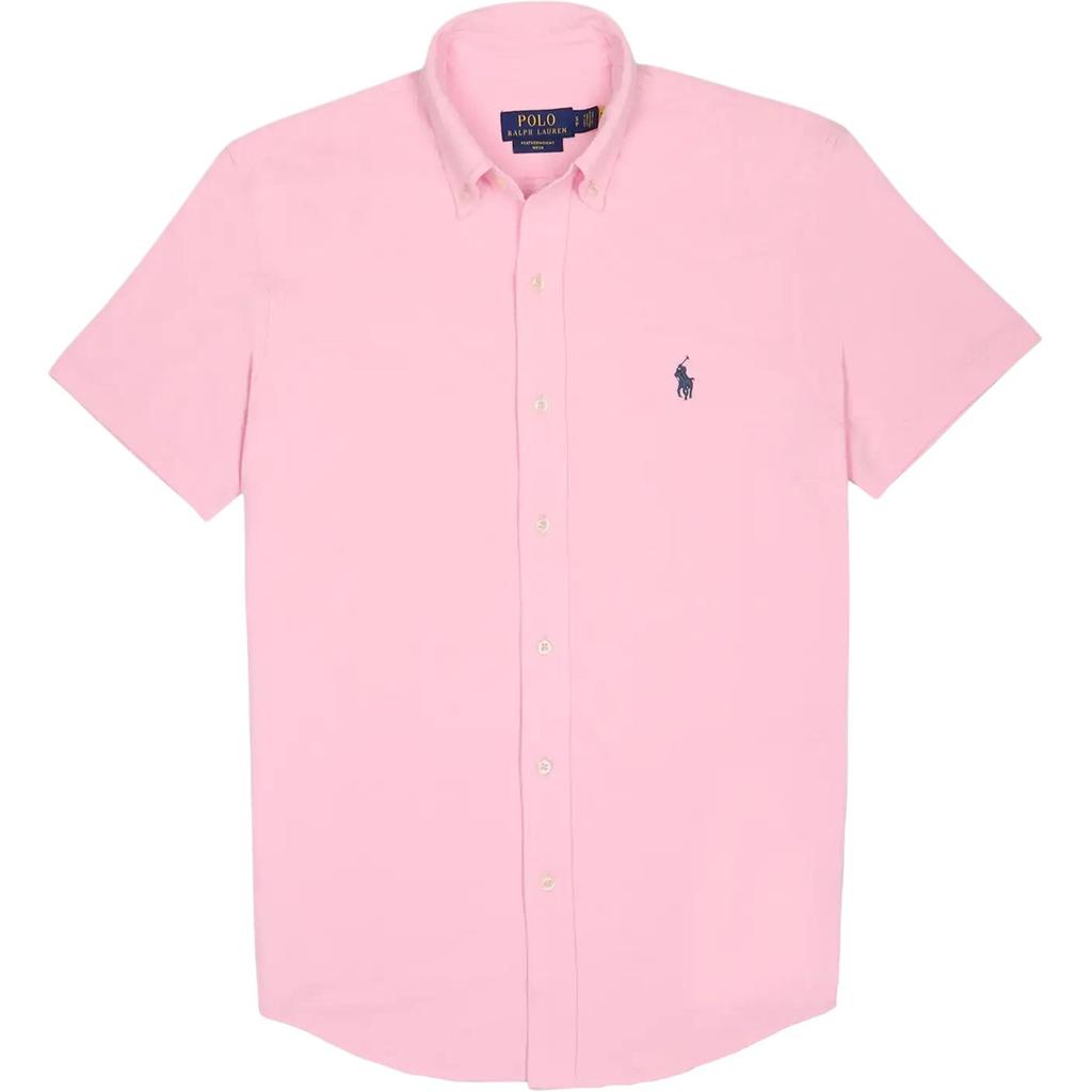 Polo Ralph Lauren SS24 Pony Logo Embroidered Short Sleeve Shirt Men Shirts Pink 710802629-001
