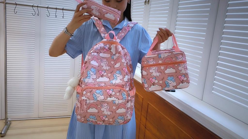 Cartoon Three-Piece Backpack Set Student Printed Schoolbag Women's Large Capacity Lightweight Backpack