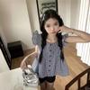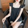 Black Ear Shirt Summer New Style Women's Solid Color Versatile Square Collar Plaid Ruffle Sleeveless Shirt Top