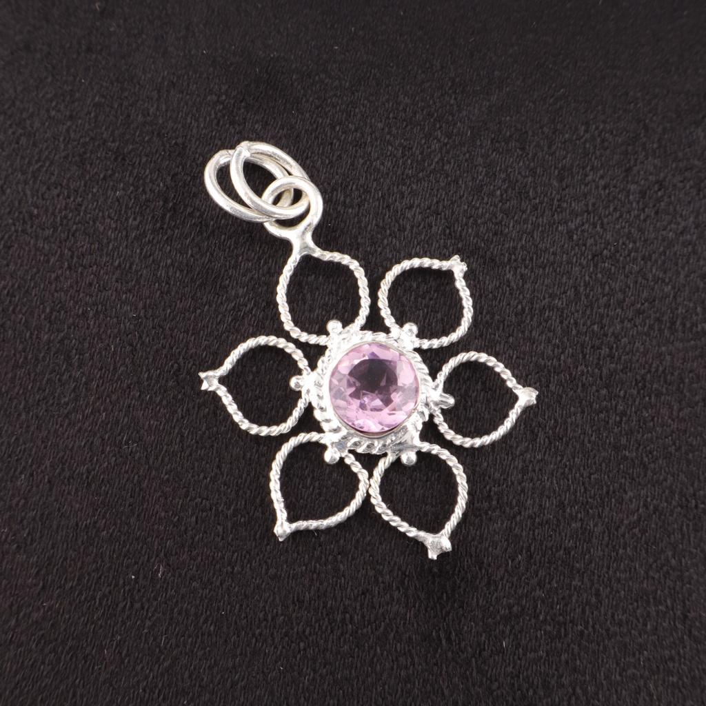 Round Kunzite Stone 925 Sterling Silver Sisters Gift Engagement Pendant Jewelry PP-18-11