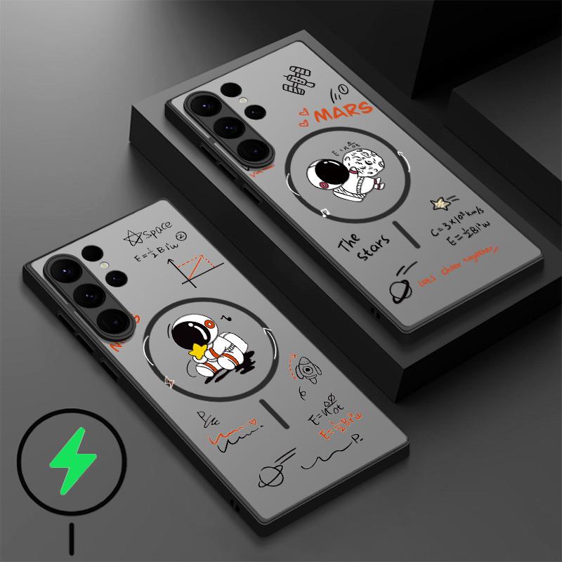 Magnetic Case For Magsafe For Samsung Galaxy S25 Edge S24 Ultra S23 S21 S24 FE S22 Plus Cute Astronaut Printed Matte Phone Cover