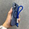 For Magsafe Candy Color Contrast Lanyard Case For iPhone 16 15 Pro Max 14 Plus 11 12 13 16e Hand Wrist Strap Matte Soft Cover