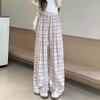 Women's Lazy Style Retro Lace Embroidery Plaid Pants | Spring-Summer High-Waist Loose Slimming Casual Wide-Leg Trousers