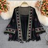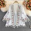 Summer Women's Shirt Bohemian Holiday Embroidered Tassel Cardigan Waist Slim Short
