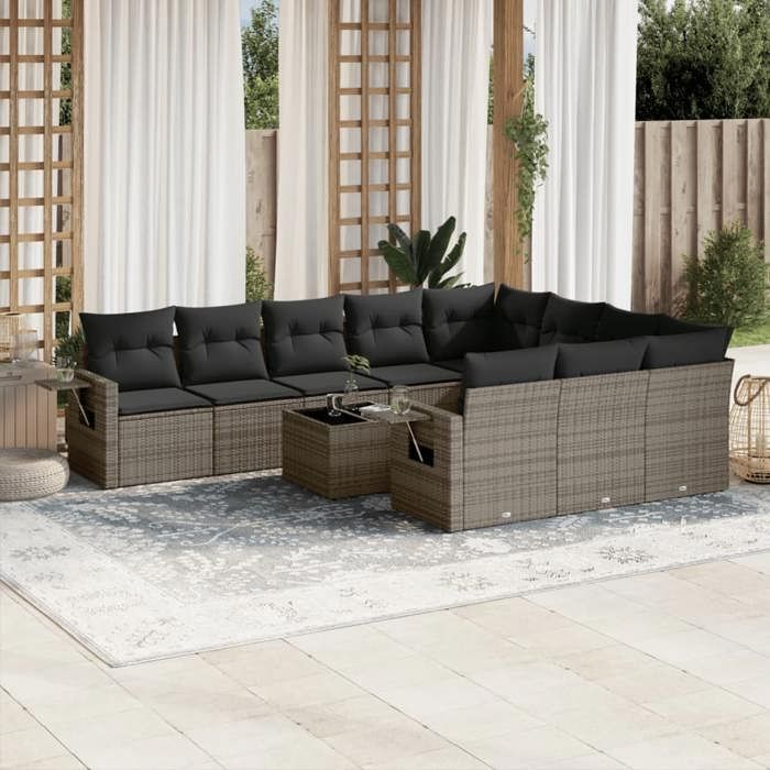 VidaXL Garden Lounge Set with Cushions 11 Pcs, Patio Sofas, Patio Furniture Set, Outdoor Furniture, Grey 3220699