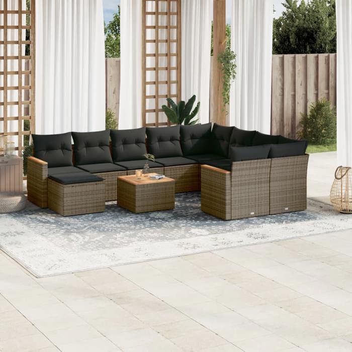 VidaXL Garden Lounge Set with Cushions 11 Pcs, Patio Sofas, Patio Furniture Set, Outdoor Furniture, Grey 3258966