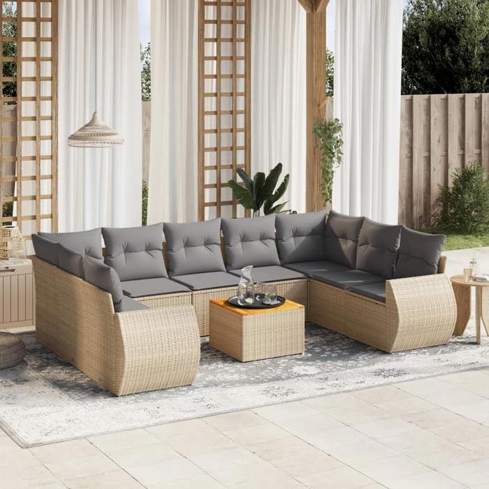VidaXL Garden Lounge Set with Cushions 10 Pcs, Patio Sofas, Patio Furniture Set, Outdoor Furniture, Beige 3225149