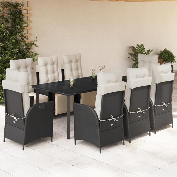VidaXL 9-Piece Garden Dining Set with Cushions, Table and Chairs with Adjustable Backrest, Outdoor Furniture, 3213391