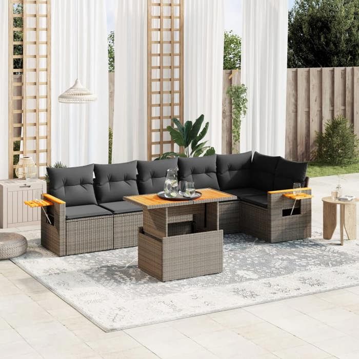 VidaXL Garden Lounge Set with Cushions 7 Pcs, Patio Sofas, Patio Furniture Set, Outdoor Furniture, Grey 3273531