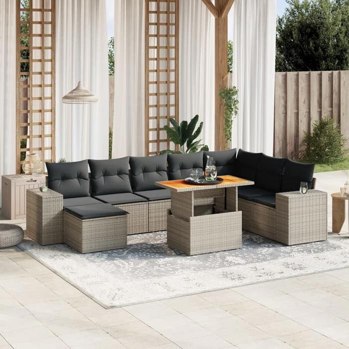 VidaXL Garden Lounge Set with Cushions 9 Pcs, Patio Sofas, Patio Furniture Set, Outdoor Furniture, Grey 3272775