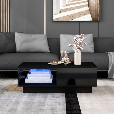Coffee Table, Modern High Gloss Sofa Table, Coffee Table, Rectangular White Living Room Table with LED Light, 15 Colors for Tea Table, Household