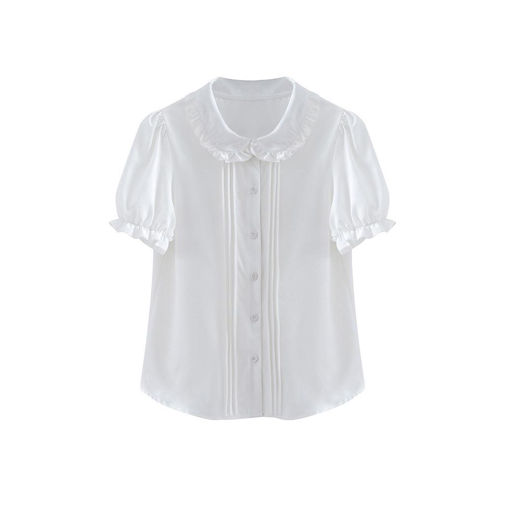 Blouse Lolita Shirt Short Sleeve Top Summer Cute White Women's (S White)