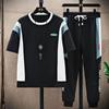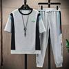 Summer Men's Youth Set Short Sleeve Long Pants Two Piece Breathable Casual Fashion Ice Cool Waffle Sportswear