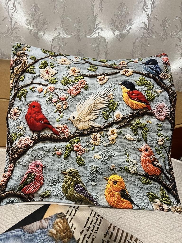 The exquisite embroidery showcases birds perched on flowery branches, creating a unique and sophisticated look. Whether you prefer bold statements or subtle accents, this pillowcase is a must-have for your home decor collection. Elevate your style with our luxurious embroidered pillowcase today!